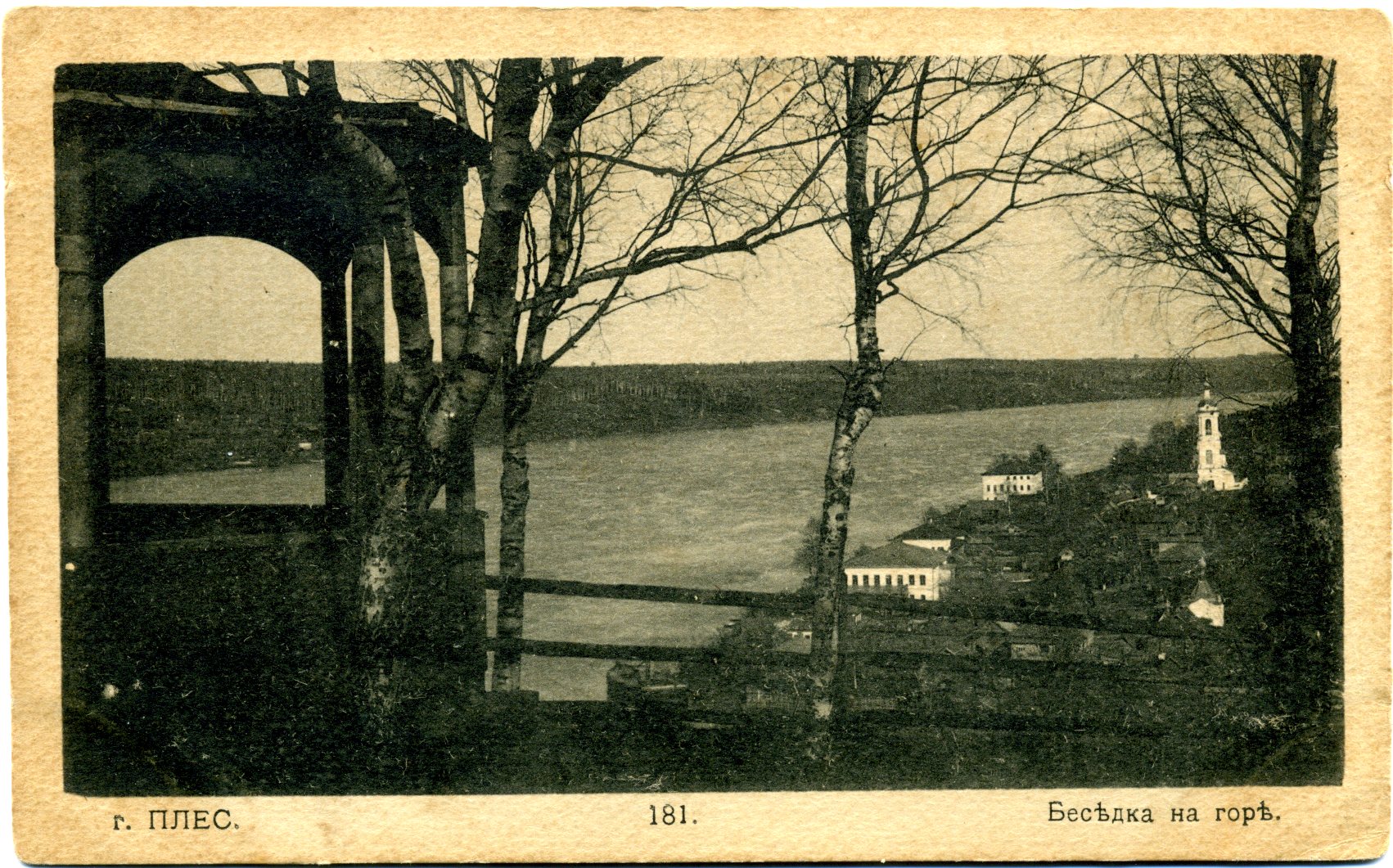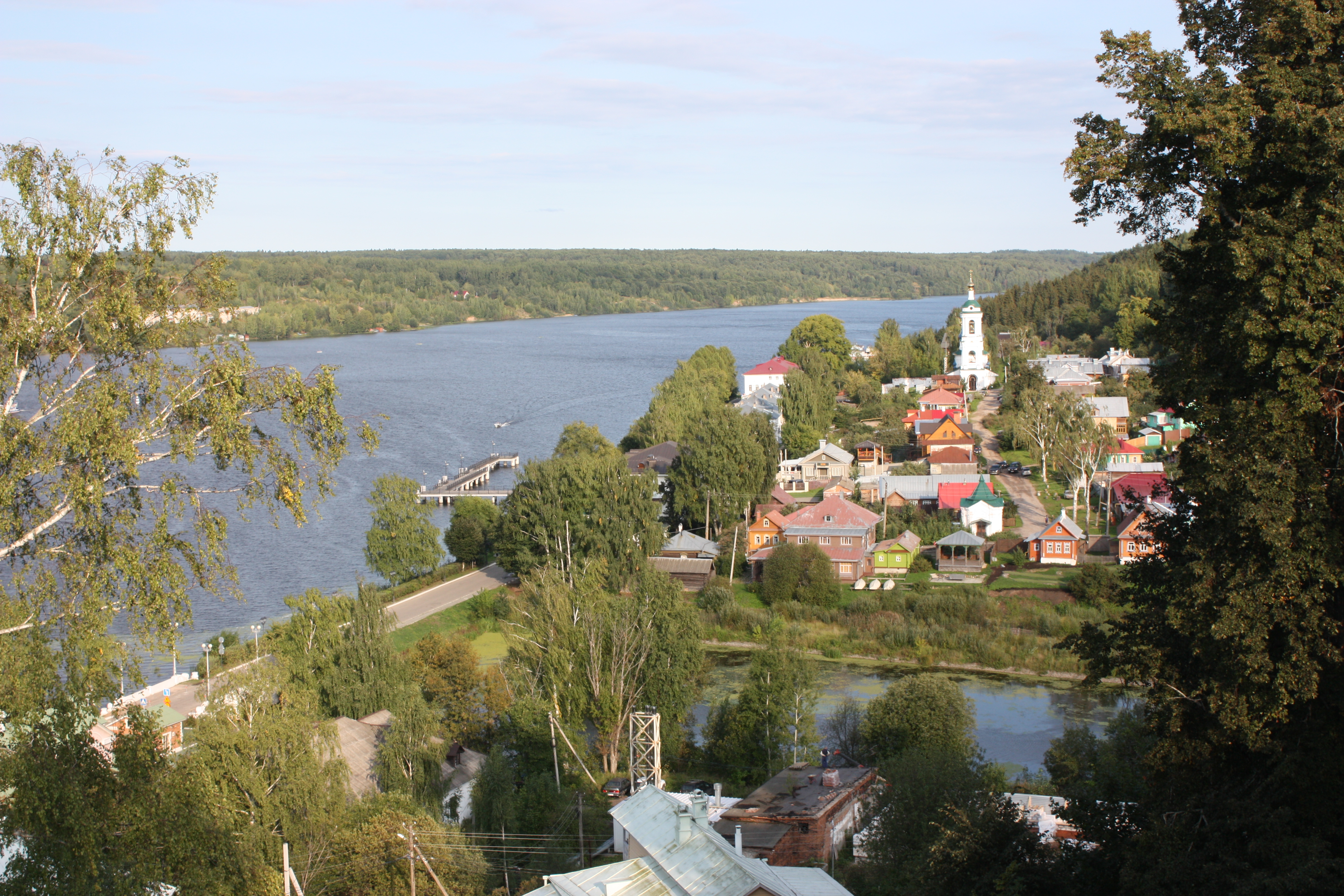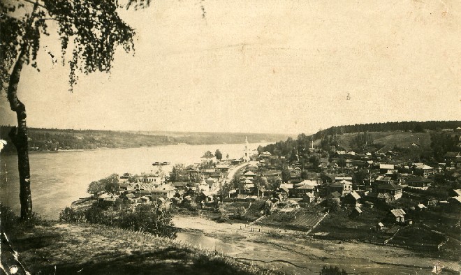 На работе – Заречье с высокой колокольней церкви Святой Великомученицы Варвары, построенной в 1821 г. Справа от церкви расположено большое белое здание под красно-коричневой крышей, бывший дом Подгорновых-Грошевых, ныне – единственный в России Музей пейзажа.