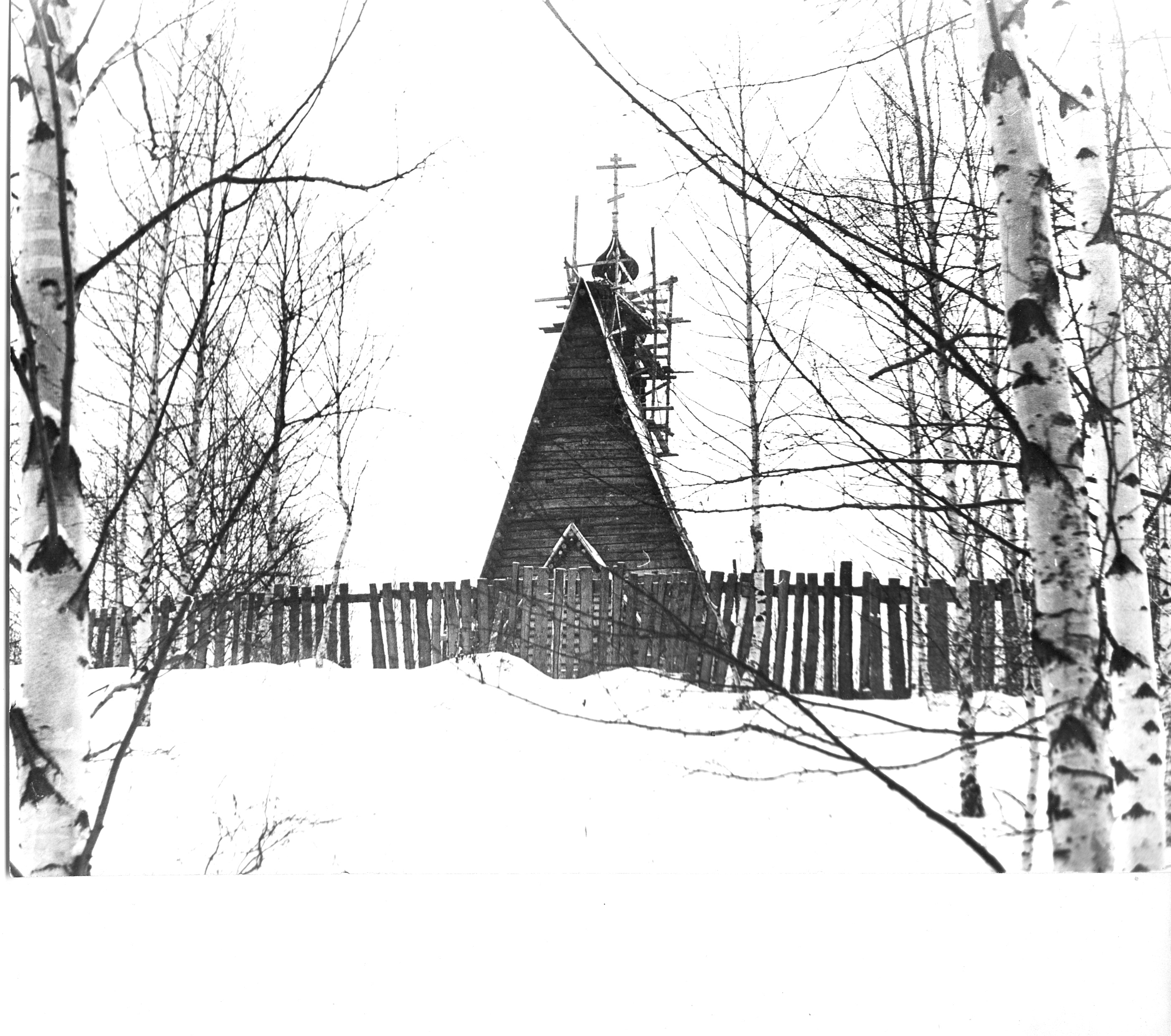 На работе видна маковка с крестом на церкви Воскресения Христова в Плёсе на горе Левитана. Эта деревянная церковь – один из редких примеров церкви клётского типа, т. е. срубленного в клеть, как изба, без галереи. Она была построена в 1699 г. и перенесена в Плёс из с. Билюково Ильинского района Ивановской области в 1982 г. Является подворьем Свято-Никольского женского монастыря г. Приволжска.