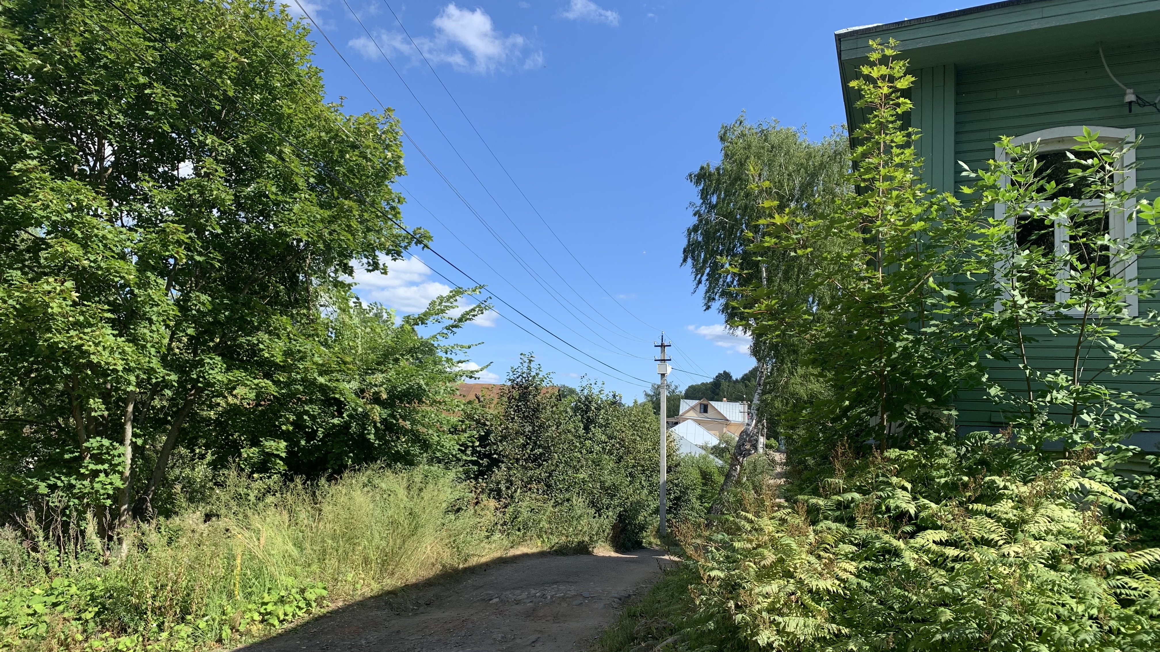 С правой стороны улицы на переднем плане изображён ещё один двухэтажный дом дореволюционной постройки. В 1914 г. он, предположительно, принадлежал Алексею Александровичу Александрову и числился по Преображенской улице (совр. ул. Островского), так как вход в дом был с этой стороны. Это тоже объект культурного наследия регионального значения – «Дом жилой», II пол. XIX в.