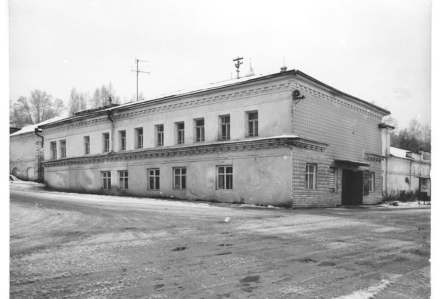 На переднем плане слева, чуть ниже Торговой площади (в советское время площади Революции) – двухэтажное здание по адресу ул. Советская, 39. В нем в советское время размещался клуб, устраивались молодежные дискотеки, работали детские кружки, ставились спектакли народного театра.