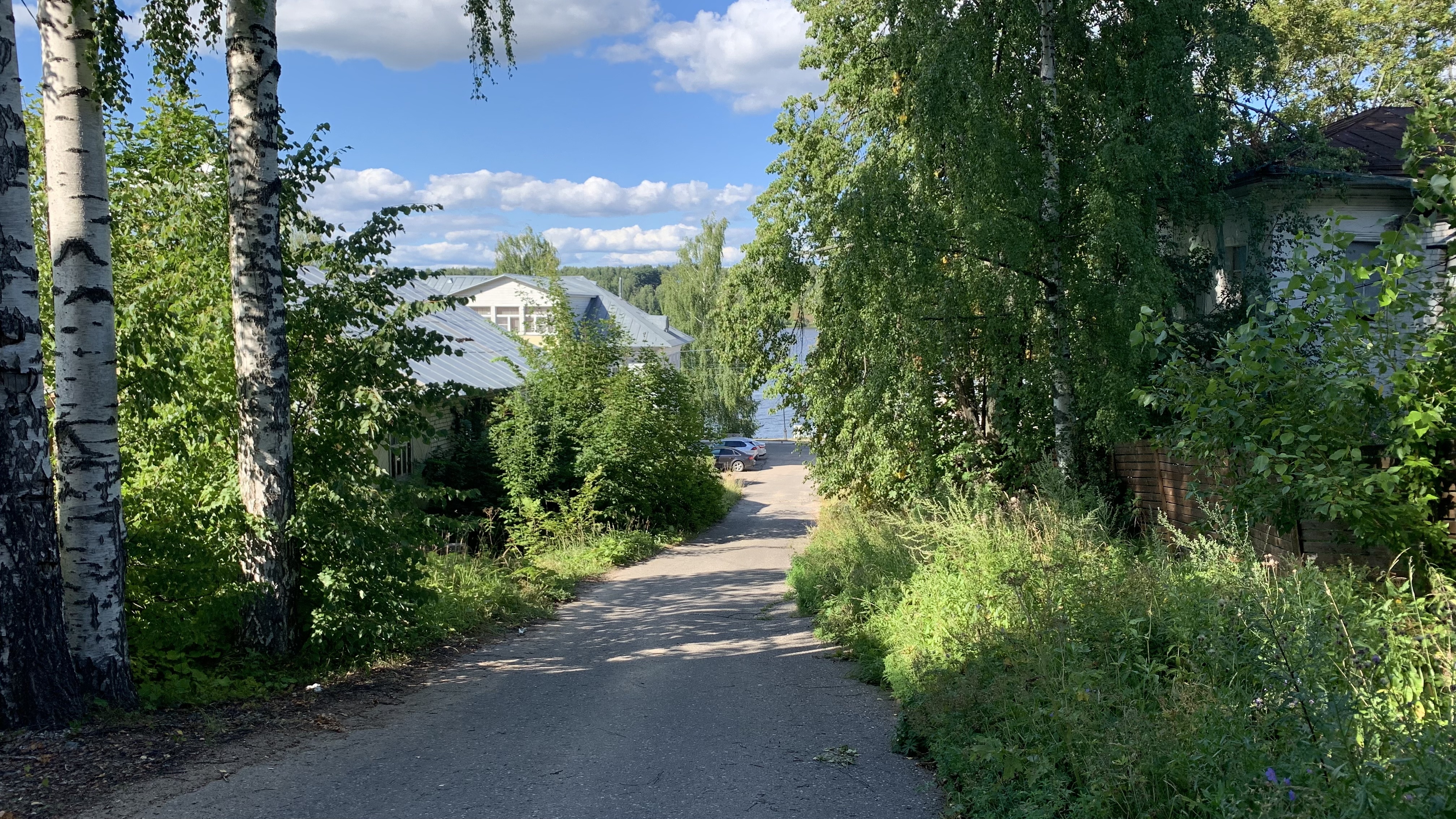 Борис Николаевич написал одну из улочек старого Плёса с купеческими особняками. Раньше она называлась Шемякинской, потому что на ней было много домов, принадлежавших плёсским жителям Шемякиным. После революции Шемякинская улица стала Советским переулком.