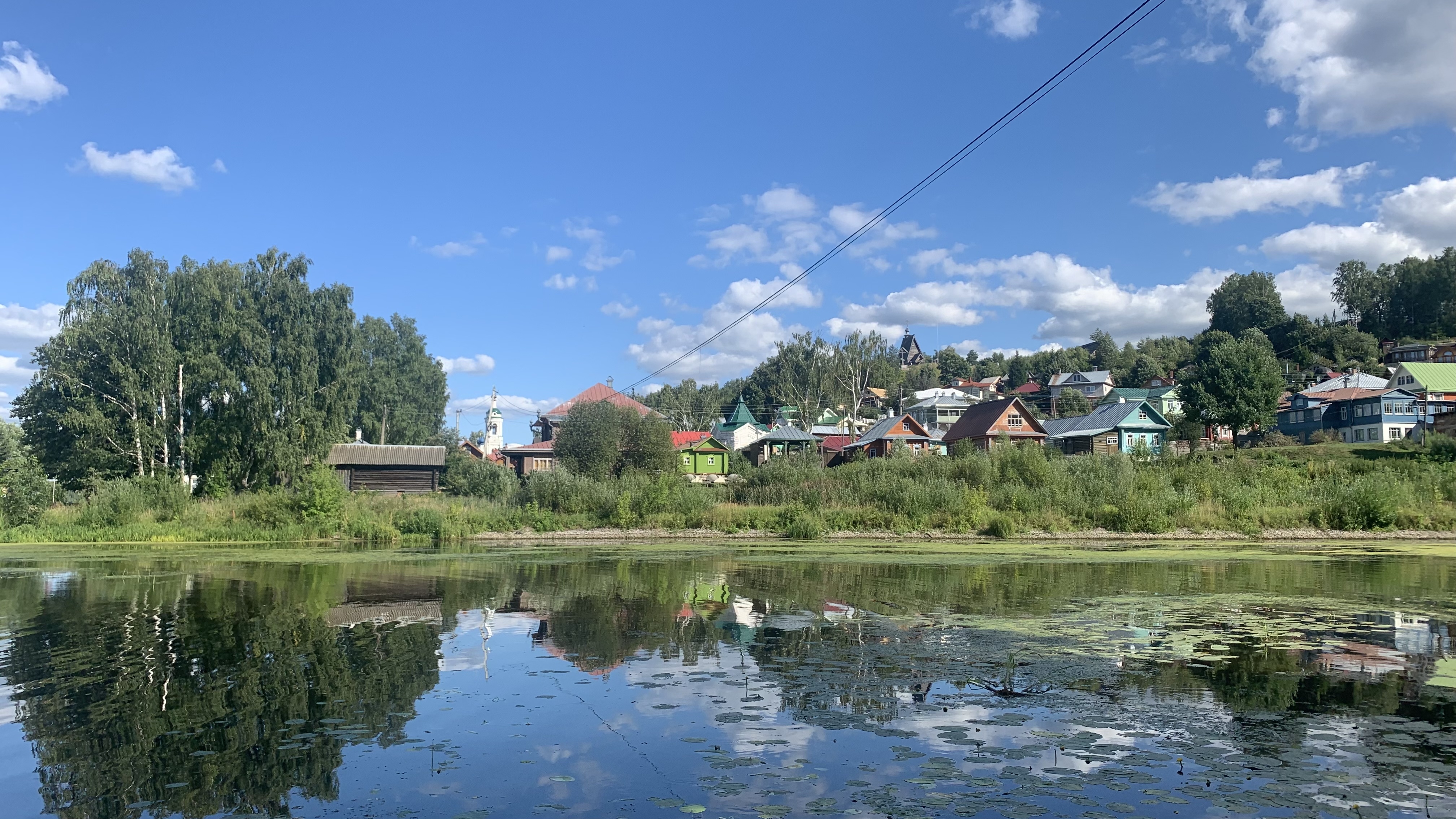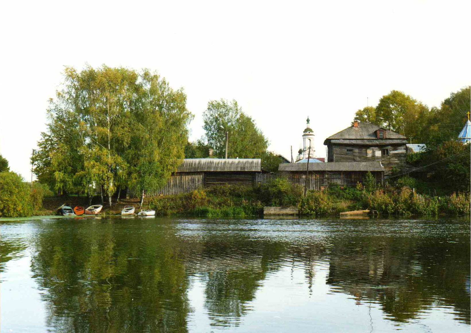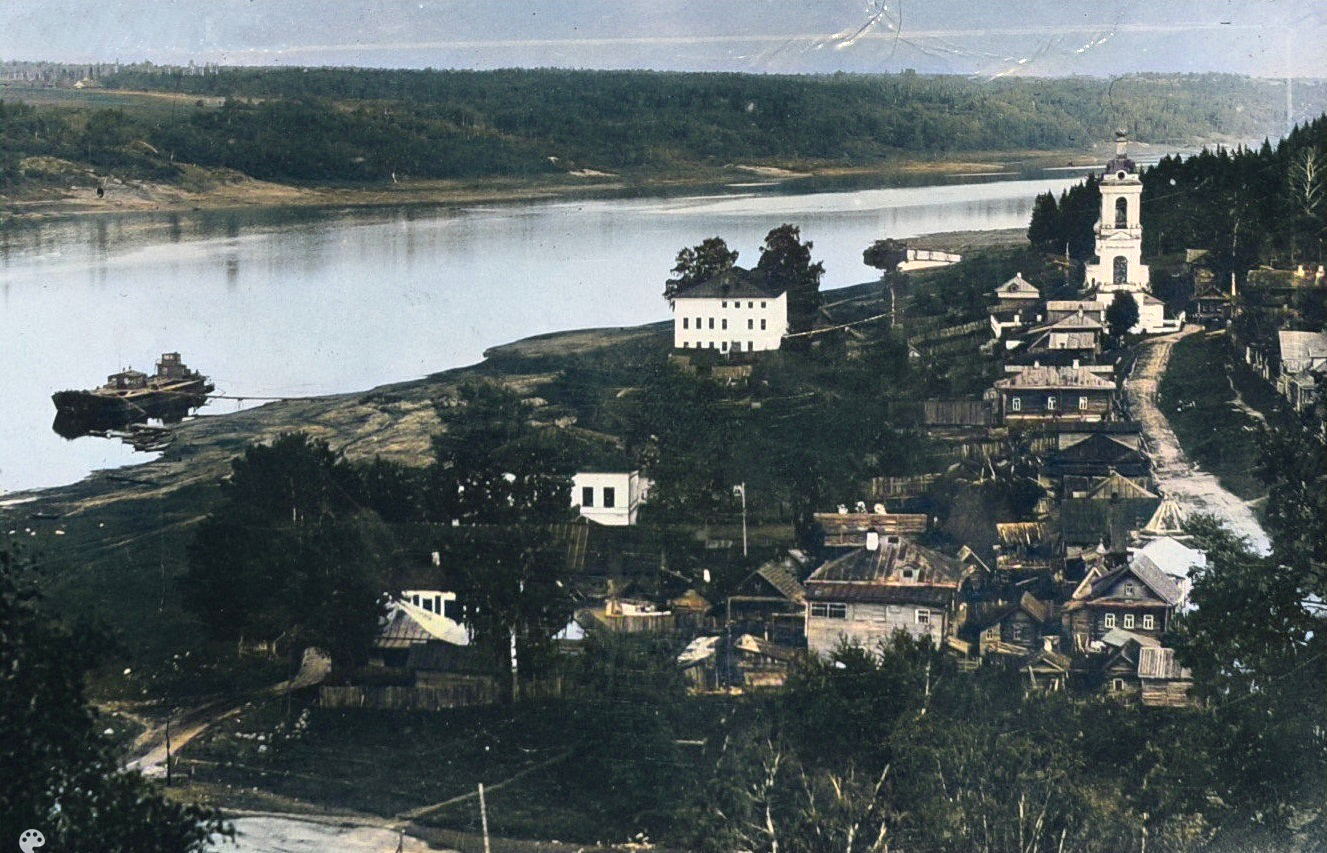 Правее – колокольня церкви Святой Великомученицы Варвары, построенной в 1821 г. Её можно видеть на работе И. И. Левитана «Вечер. Золотой Плёс».