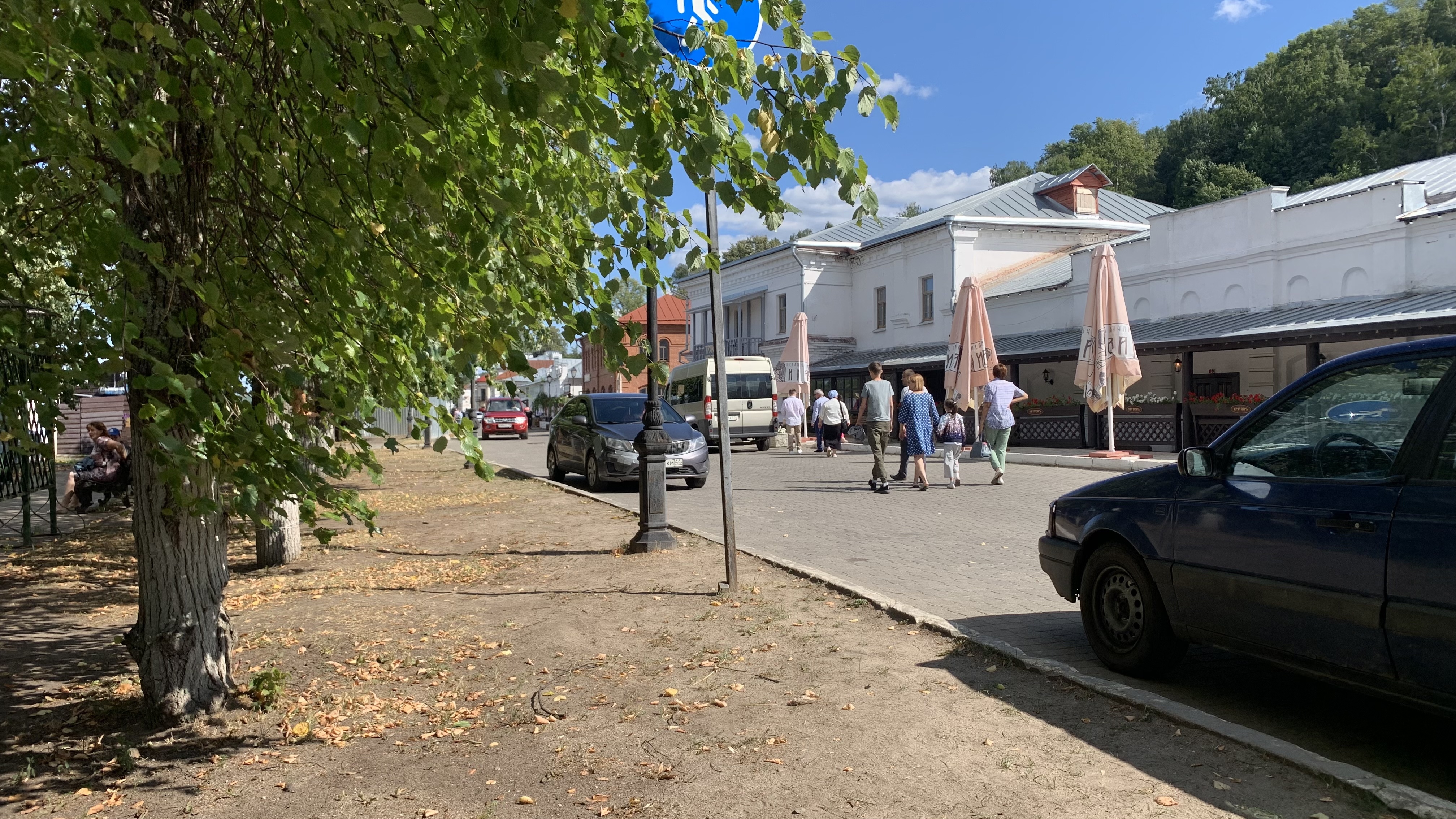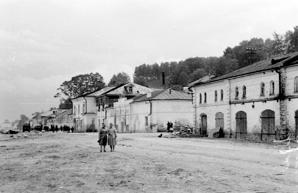 Напротив рядов располагался ряд деревянных односкатных лавок, куда в базарные и ярмарочные дни выплескивалась не помещавшаяся на базарную площадь торговля. Это место называли Нижней торговой площадью. Сейчас здесь располагается аллея, в которой в туристический сезон работает выставка-продажа живописи, графики и изделий декоративно-прикладного искусства.