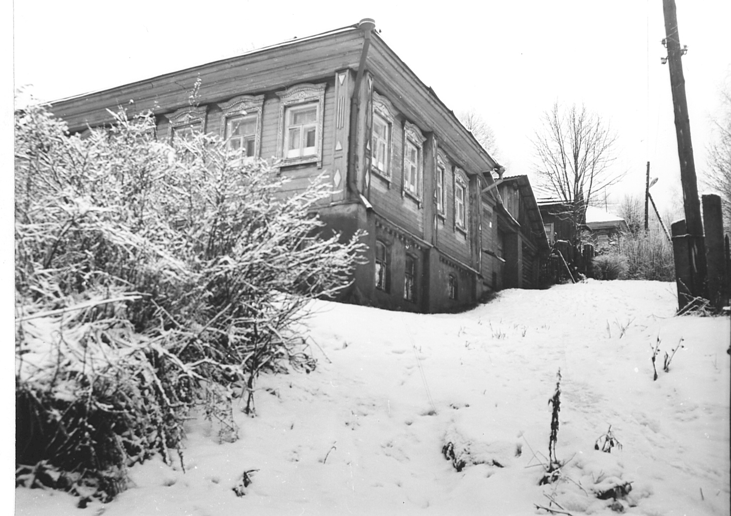 За ним – дома, принадлежавшие до революции Миловым и Марьиным. Выше по склону виднеется дом приветливой Анны Витальевны, к которой ходили за молоком со всего Заречья. В доме частенько пахло вкусными пирогами. От словоохотливой хозяйки просто так было не уйти, обязательно расспросит и угостит горячим пирогом. А рядом с домом были куст сирени и скамеечка, с которой можно было полюбоваться замечательным видом.