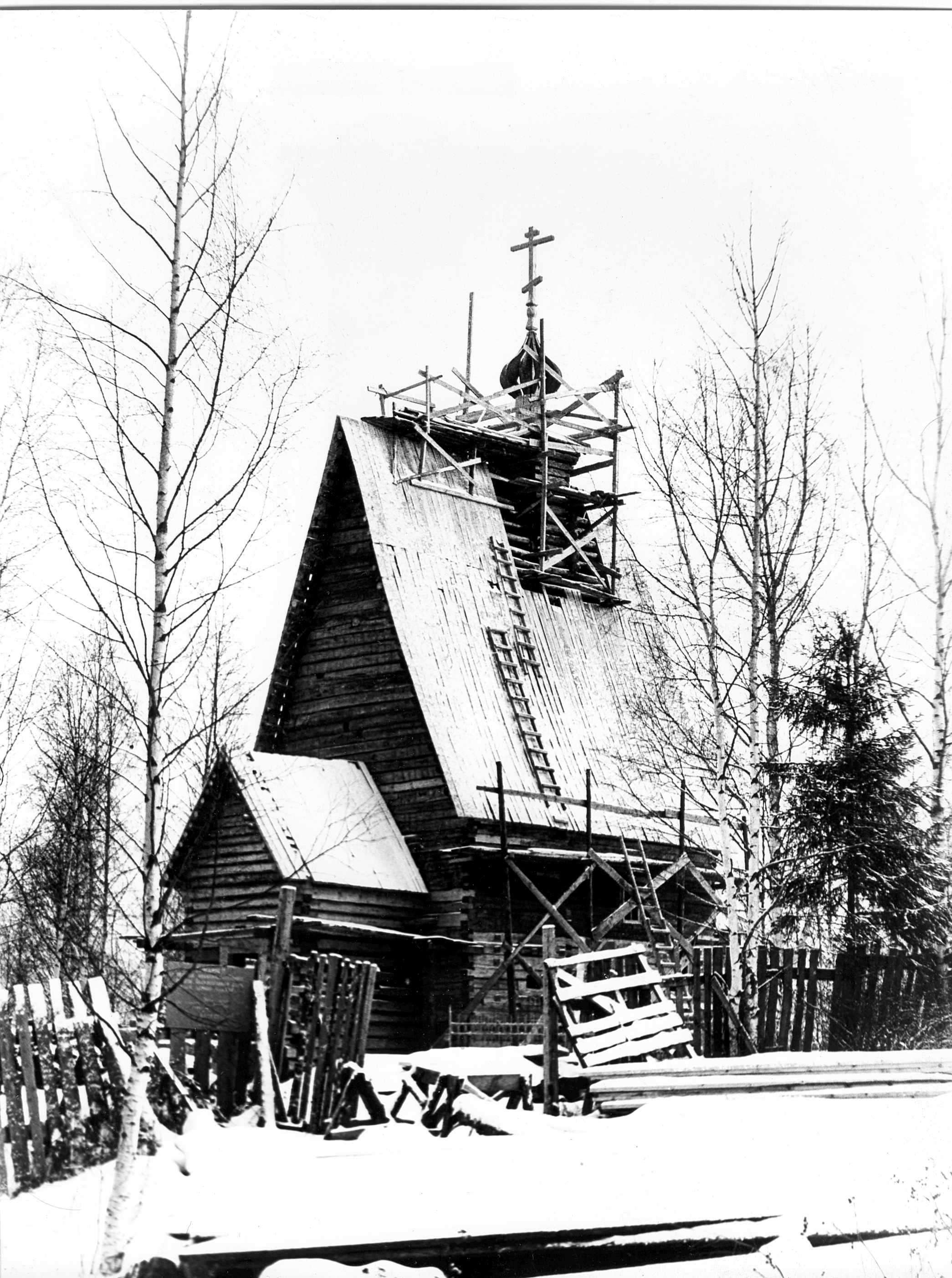 На работе видна маковка с крестом на церкви Воскресения Христова в Плёсе на горе Левитана. Эта деревянная церковь – один из редких примеров церкви клётского типа, т. е. срубленного в клеть, как изба, без галереи. Она была построена в 1699 г. и перенесена в Плёс из с. Билюково Ильинского района Ивановской области в 1982 г. Является подворьем Свято-Никольского женского монастыря г. Приволжска.
