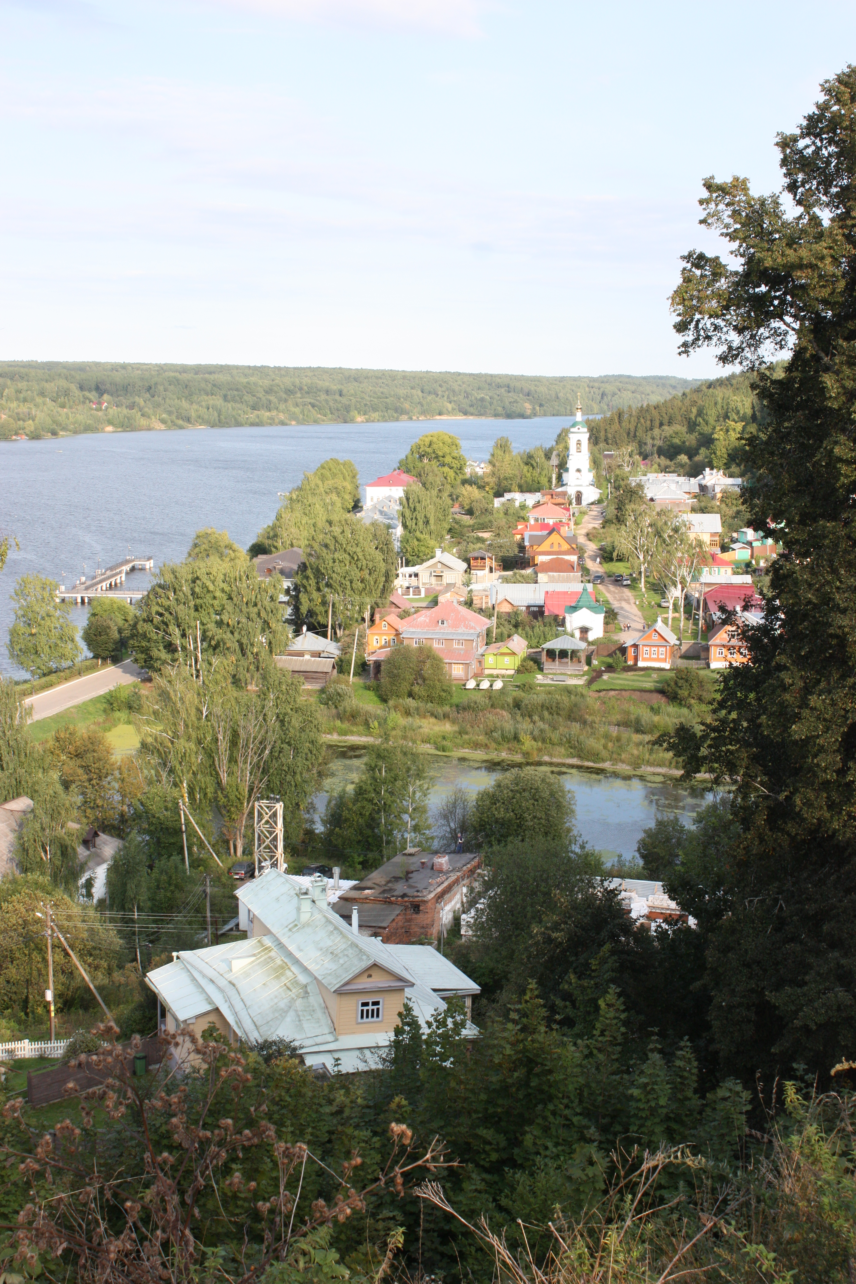 За домом – устье реки Шохонки, разделяющей Плёс на «город» и «Заречье», расположенное за рекой. Отношения между жителями этих частей Плёса были сложные. На Масленицу они нередко сходились в кулачных боях, да и проживали в Заречье, в основном, старообрядцы. За ближайшей окраиной города под сенью елей на старообрядческом кладбище «Зелѐня» покоились их предки.
