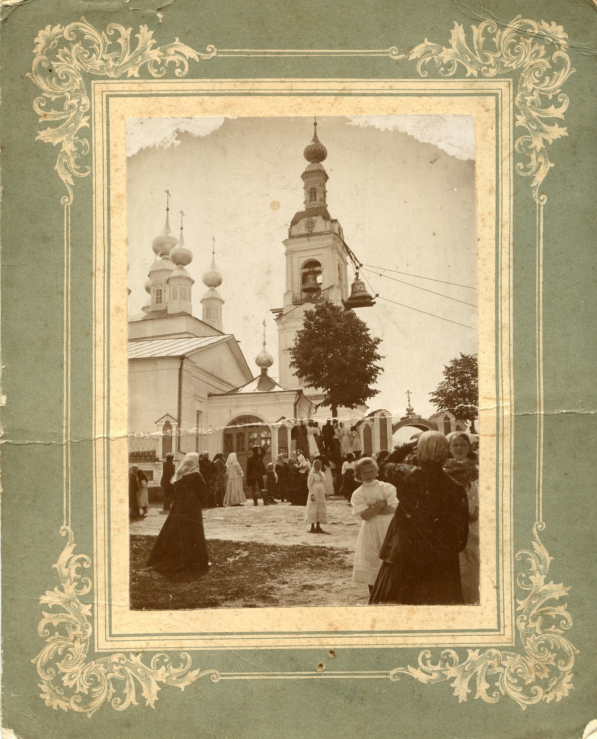 Всю картину занимает храмовый комплекс, состоящий из двух церквей: Зимней Введенской и Летней Троицкой.