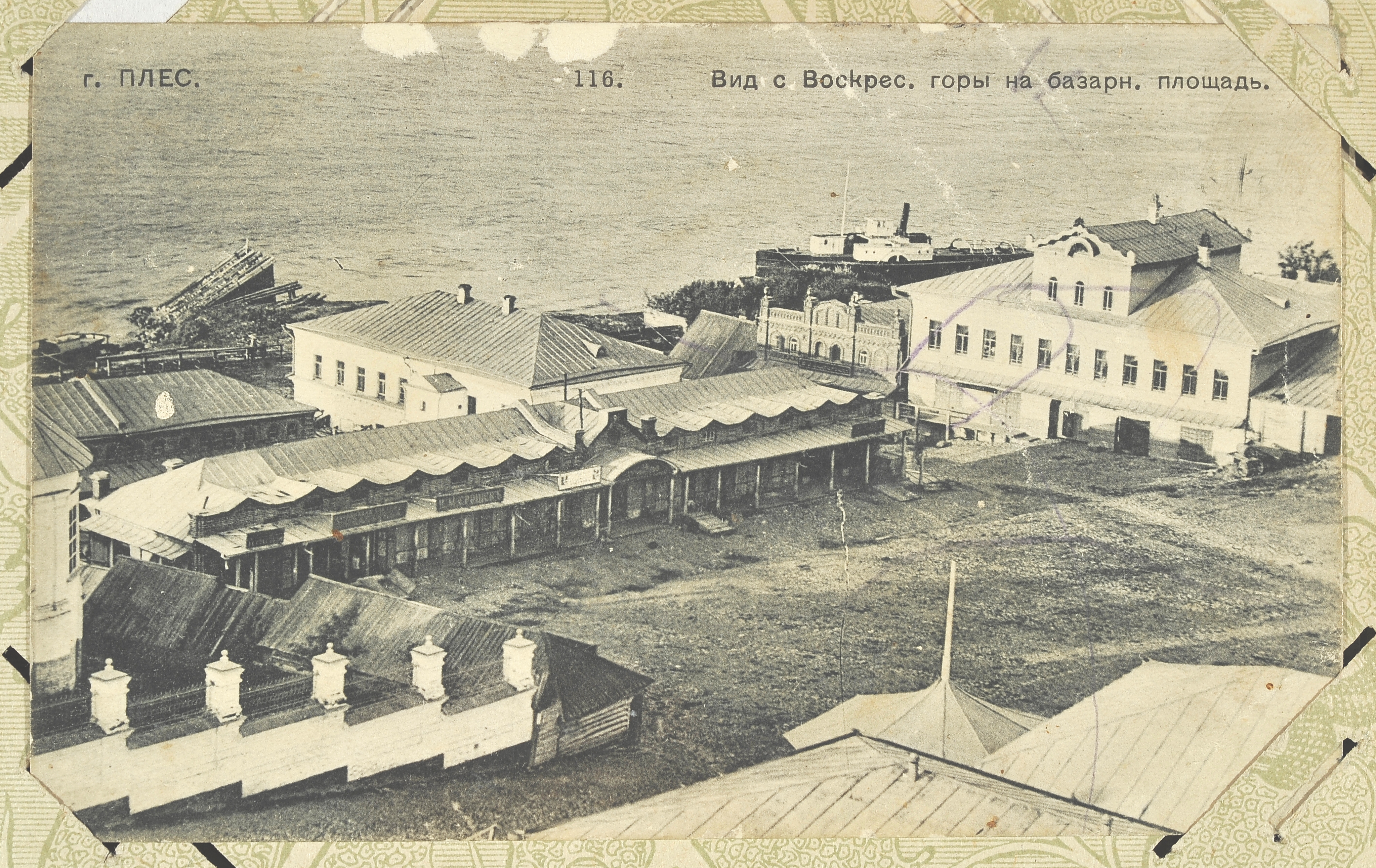 Внешний исторический вид зданий запечатлён на работе А. В. Маковского «Базарный день в Плёсе» 1919-1921 гг. и на фотографиях кон. XIX – нач. XX вв.